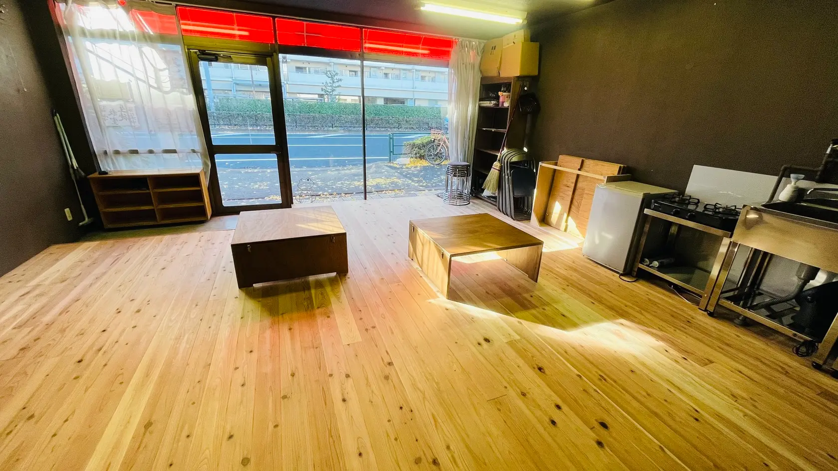 杉無垢床×ミニキッチンの自由な空間