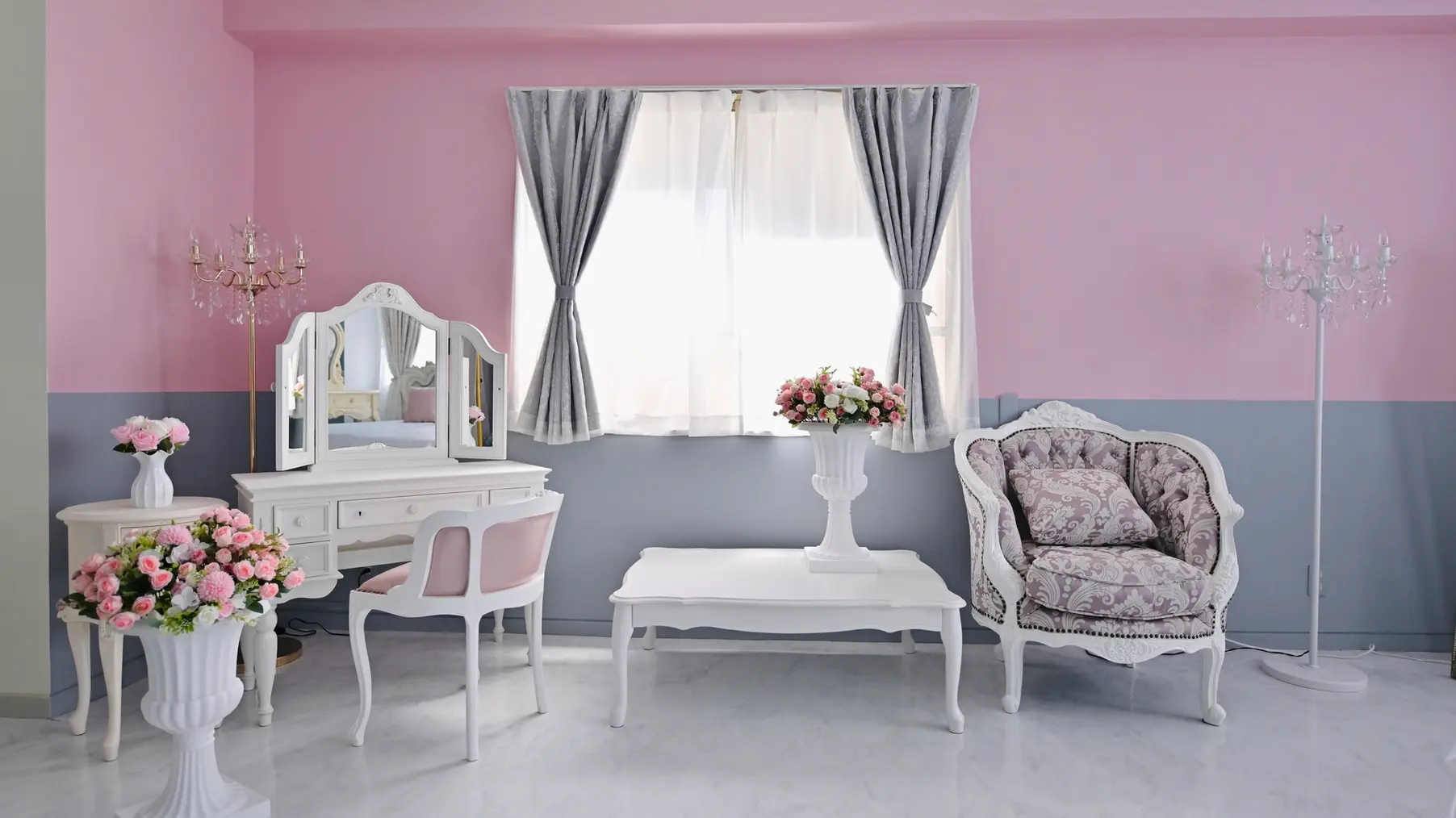【大塚駅1分】可愛いピンク×グレー🎀ロココ調水色ブルー🩵自然光姫系プリンセスベッド👑コスプレ,ポトレ,推し活,生誕祭,撮影会等✨